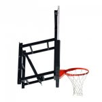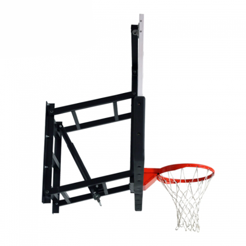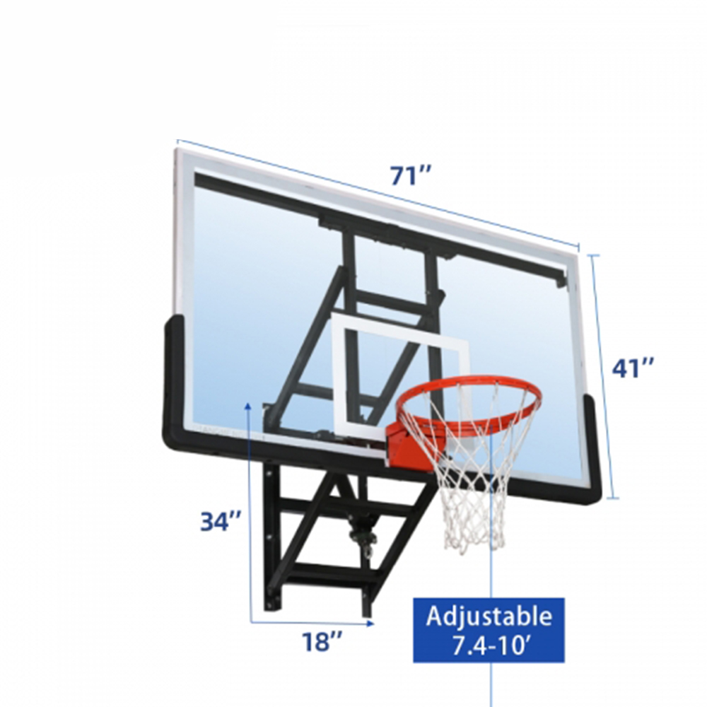 Monster series X3 wall mounted basketball goal offers wall mount adjustability indoors or out! height adjustment mechanism allows to adjust from 10′ to 7’4″ . To adjust, use a crank handle to release the height regulator. No tools or ladders required